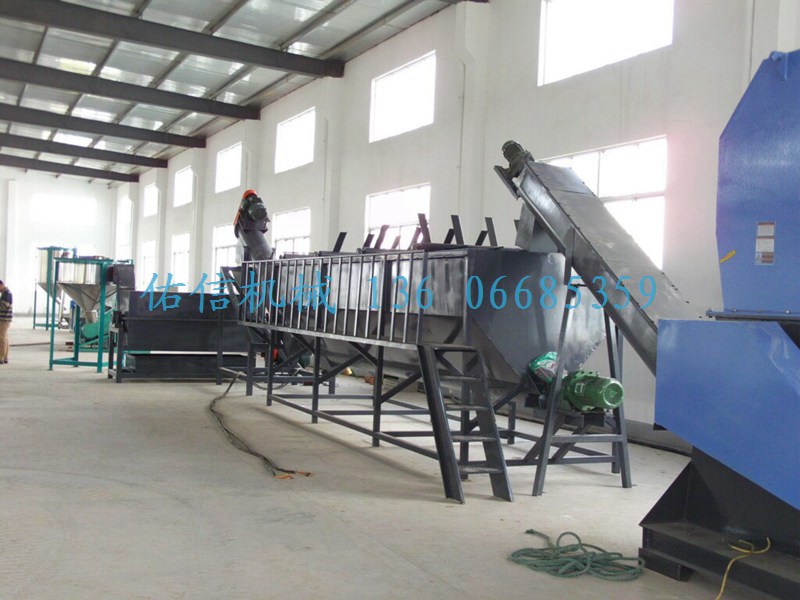 สายการบดและซักผ้าพลาสติก PP PE มักจะรวมถึง: สายพานลำเลียง --- เครื่องบดฟิล์มเปียก --- สกรูลำเลียง --- ถังซักผ้าลอยเกล็ด --- สายพานลำเลียงยก --- ระบบซักแรงเสียดทาน --- ถังซักผ้าลอยเกล็ด --- สายพานลำเลียงยก --- เครื่องจักรแยกน้ำ --- ระบบจัดเก็บ